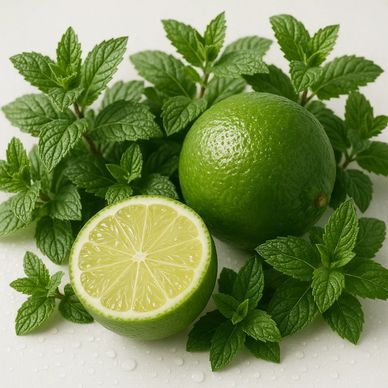 Vivid mint leaves and zesty lime awaken the senses, bringing crisp clarity, pure vitality, and the energy of sunlit mornings.